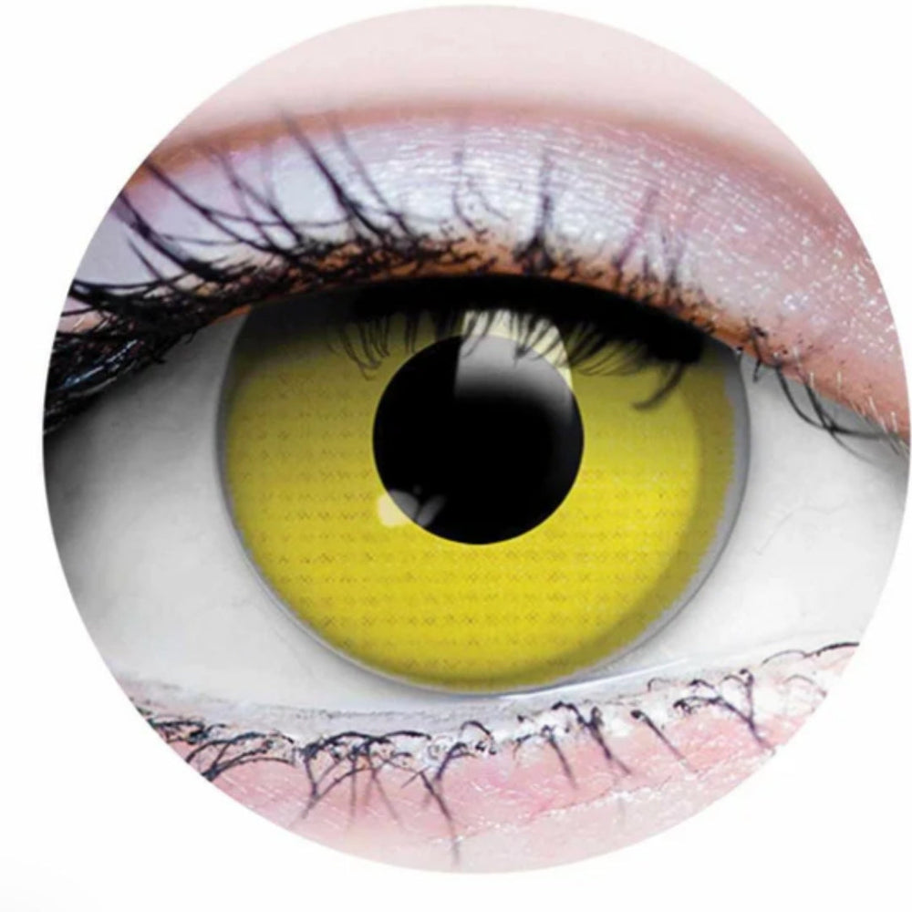 RAVEN contact lenses feature all yellow with no outer ring. Bright and opaque!