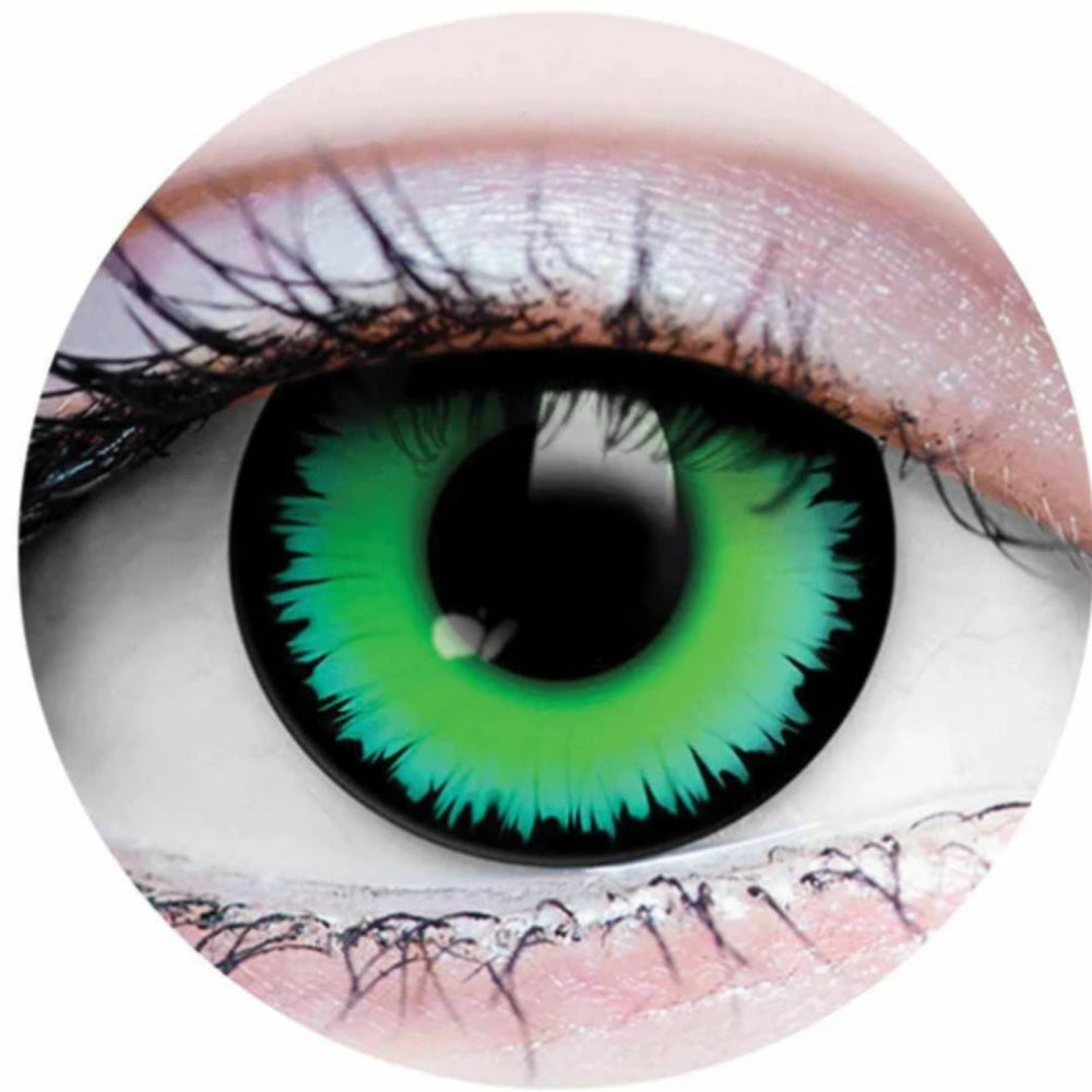 WEREWOLF I features an opaque bright green iris with black outer ring to give a dramatic and drastic transformation. Adds brightness and widens eyes.