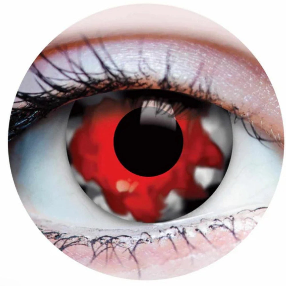WALKING DEAD II features a transparent pupil and opaque blood red over white to give the illusion of blood splatter. Perfect for Zombie characters, demons, monsters and vampires or any looks that call for blood drops, blood stains etc.