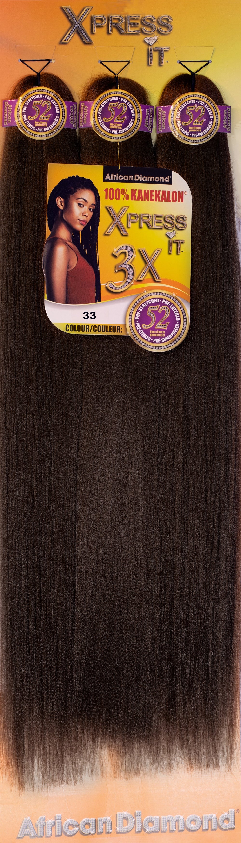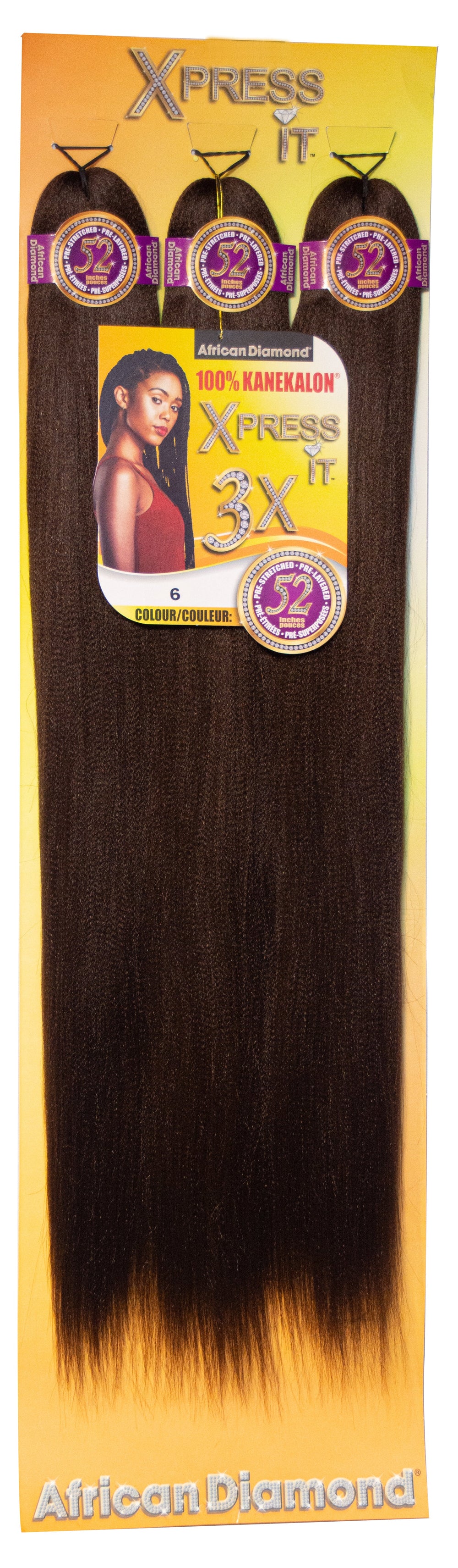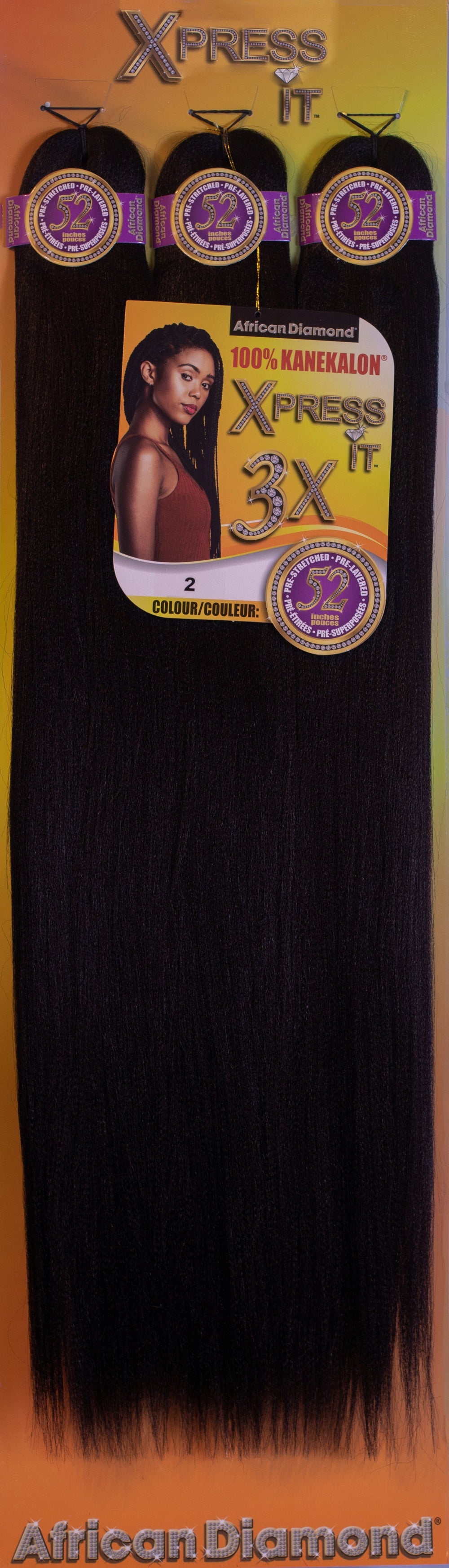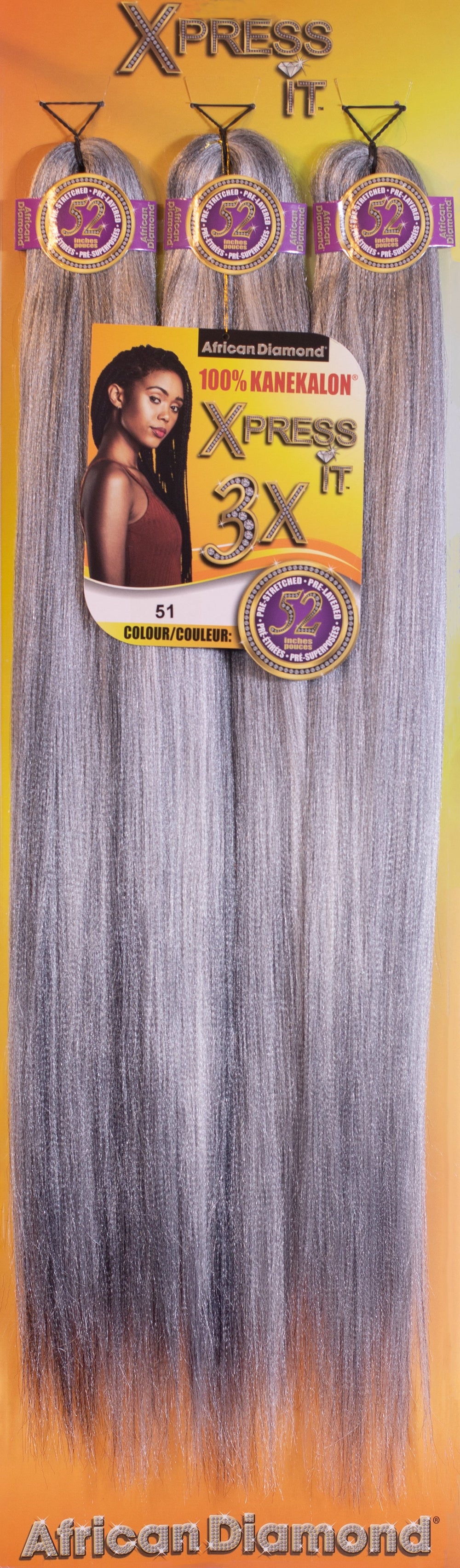 African Diamond 3x Pre-stretched 52" features 100% Kanekalon fiber, pre-layered for a natural look. This ultra-lightweight hair is designed to resist tangling and is compatible with hot water setting techniques, ensuring easy styling and long-lasting wear.