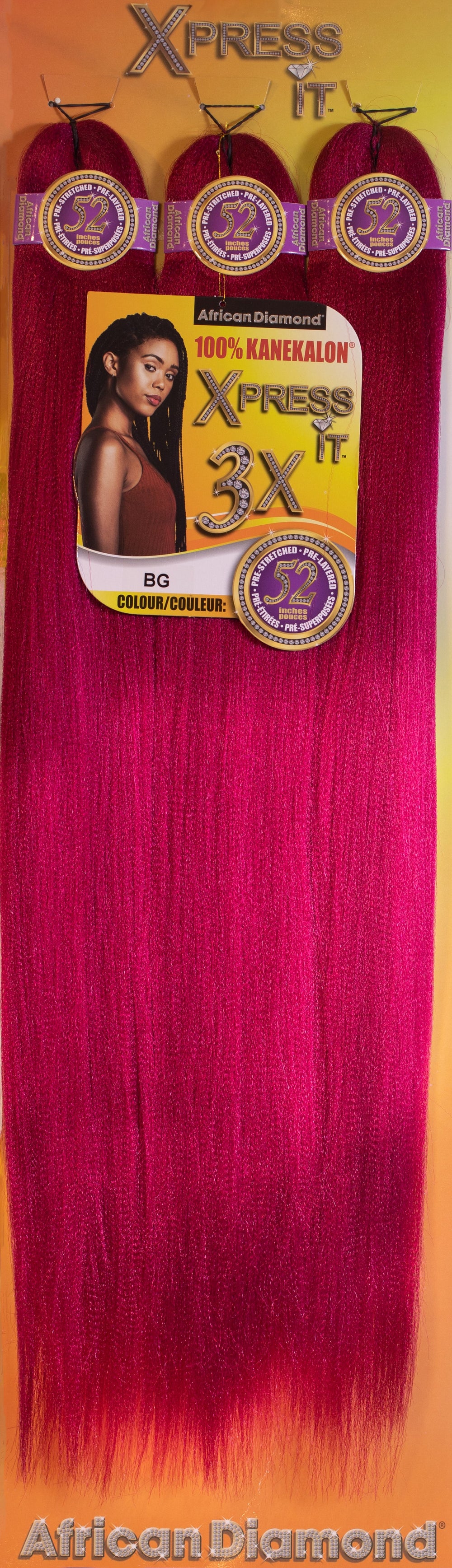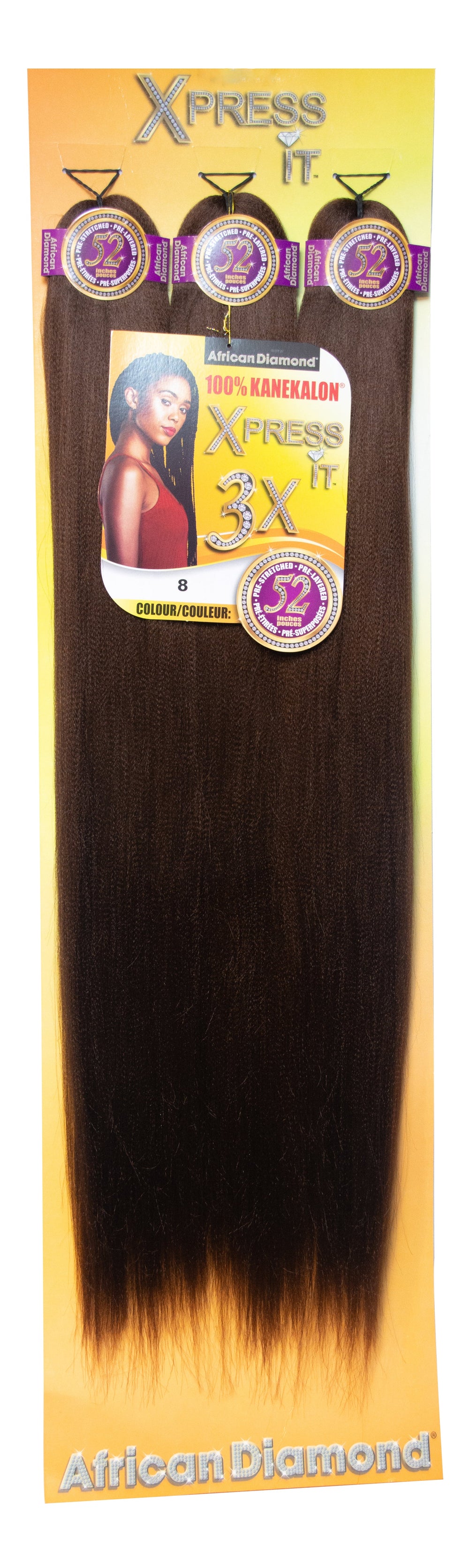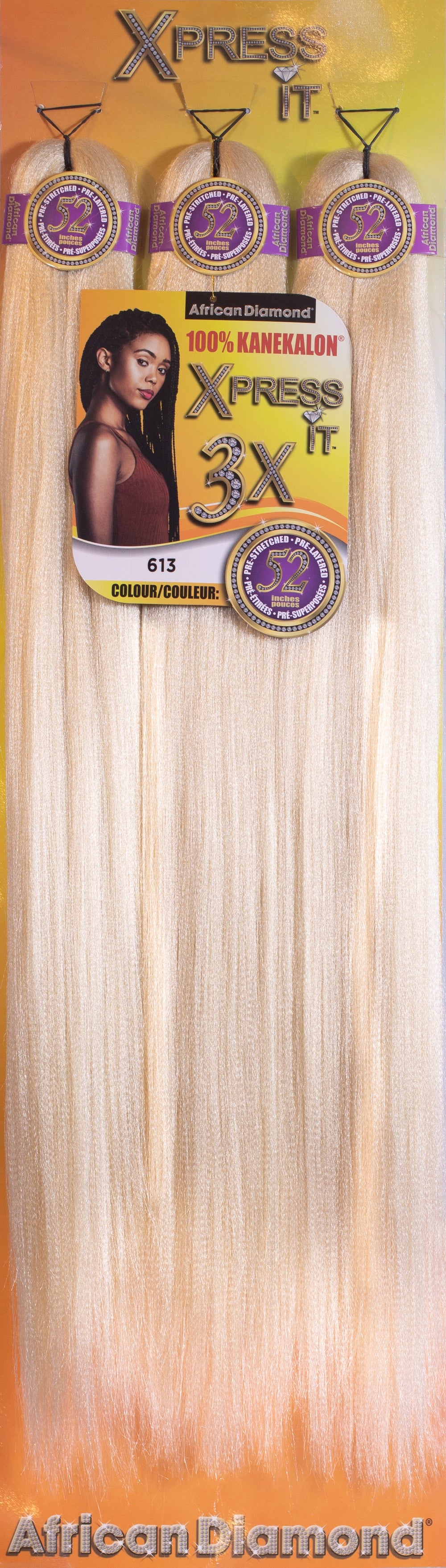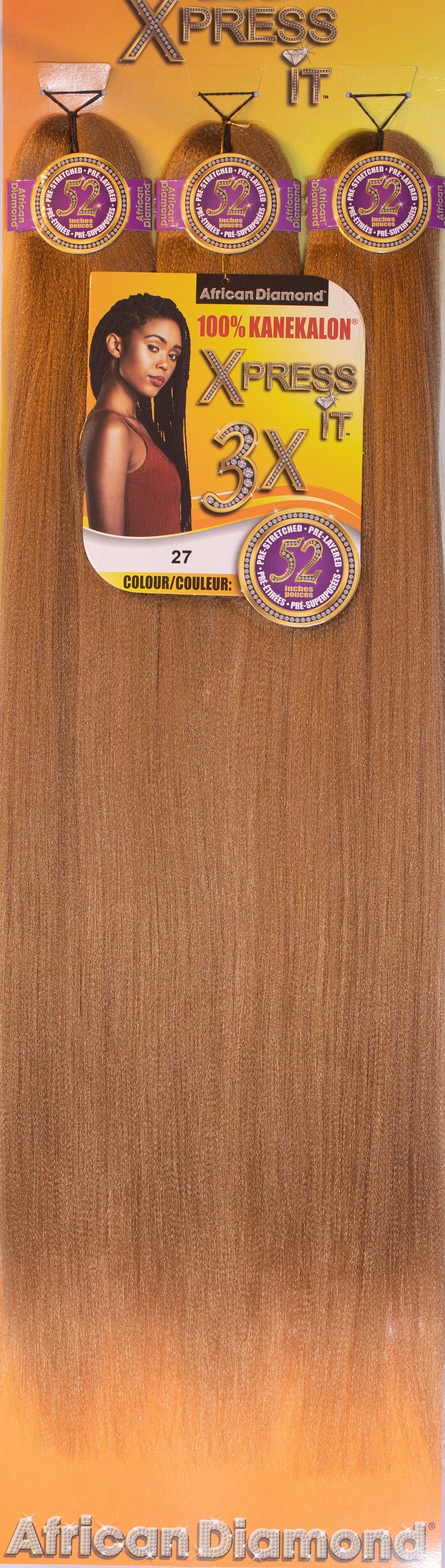 African Diamond 3x Pre-stretched 52" features 100% Kanekalon fiber, pre-layered for a natural look. This ultra-lightweight hair is designed to resist tangling and is compatible with hot water setting techniques, ensuring easy styling and long-lasting wear.