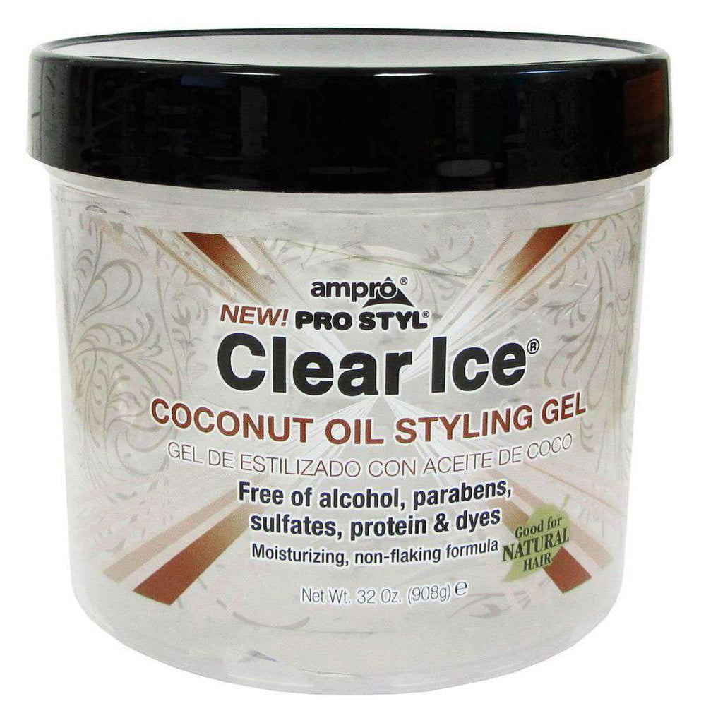 Ampro Pro Styl Clear Ice Coconut Oil Styling Gel moisturizes your hair while keeping your styles looking great all day. This non-flaking, alcohol-free formula provides a firm hold for natural or chemically treated hair.