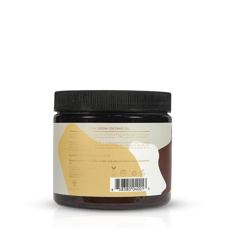 Massage onto skin and scalp for a moisturization boost and improvement in skin barrier quality. Apply to the hair for increased moisture and strength. Our Extra Virgin Coconut Oil can also be mixed with other As I Am products for an in-home DIY experience.