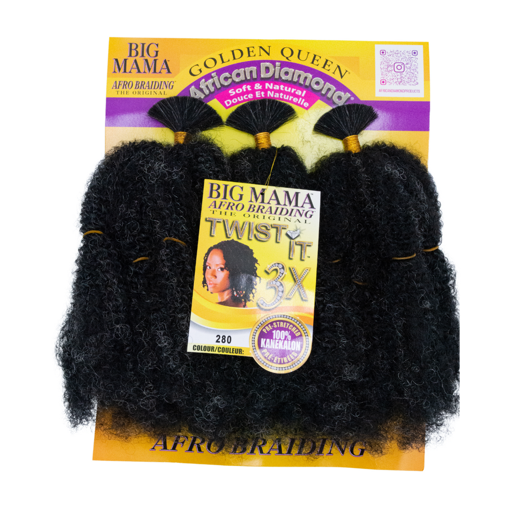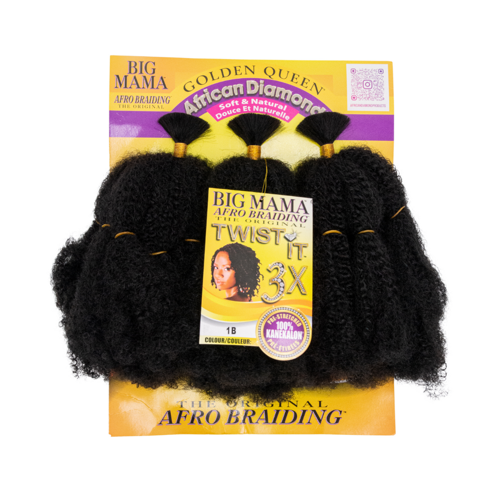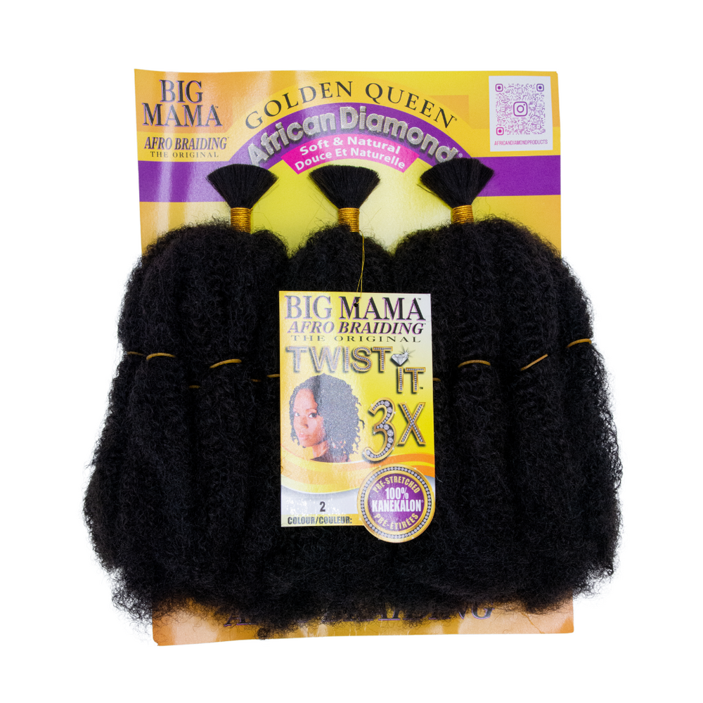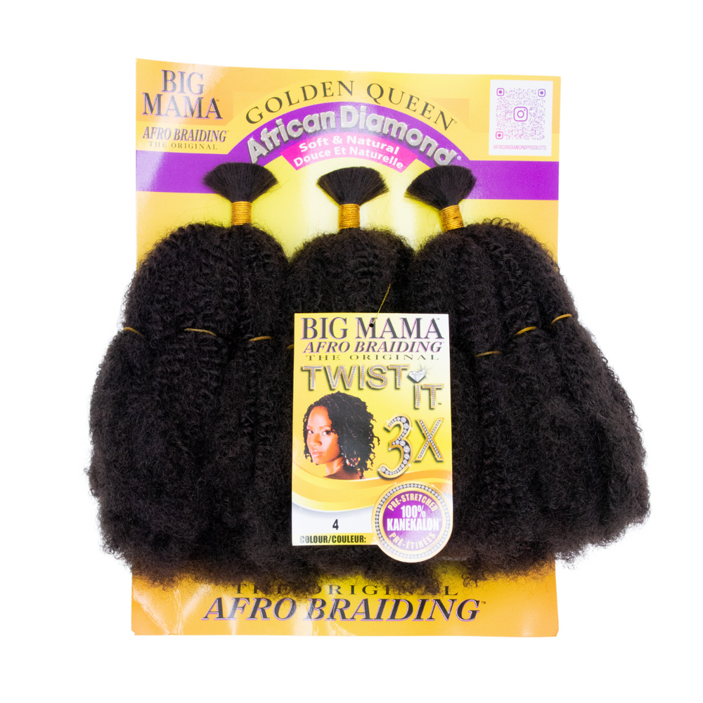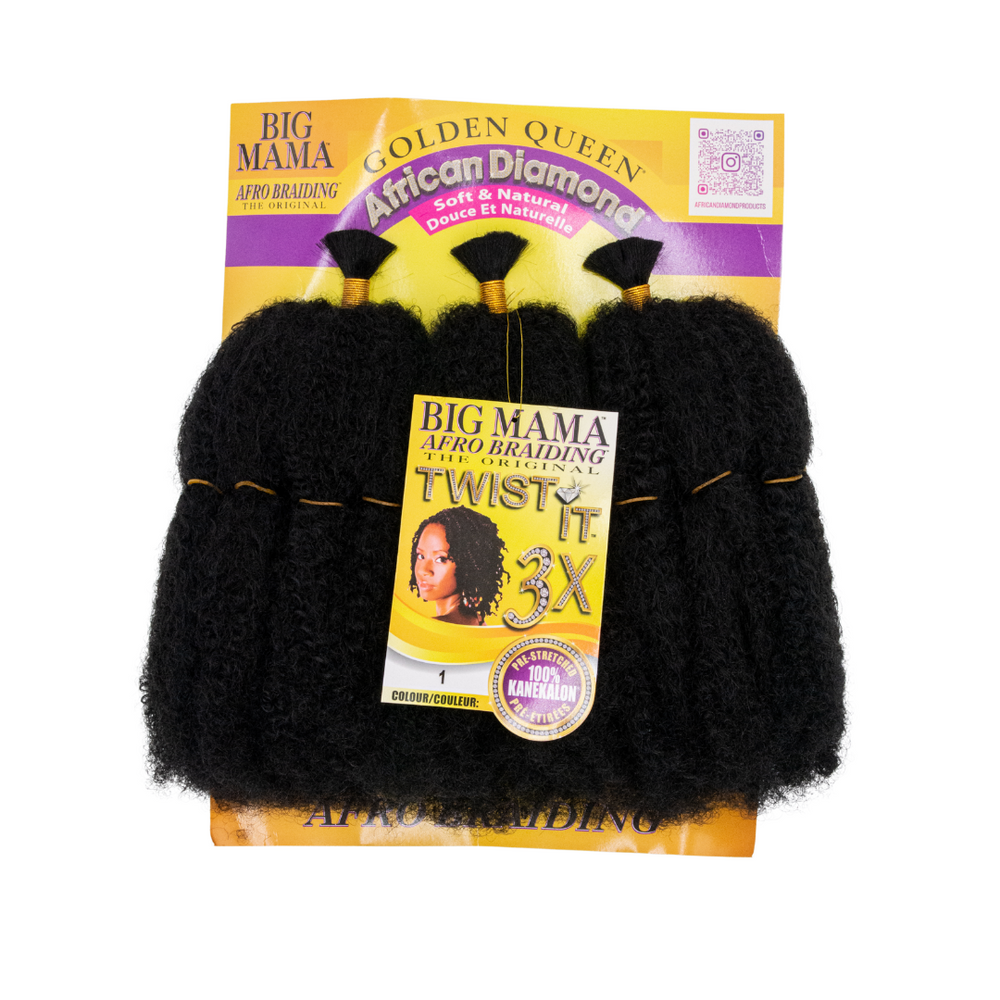 One Value pack of Big Mama 3x (Afro Braiding) is enough to create any style. Soft Afro kinky texture for braiding! Natural hair very closely resembles human hair feel.