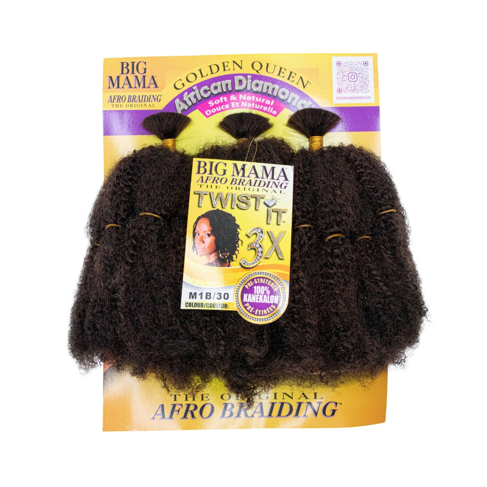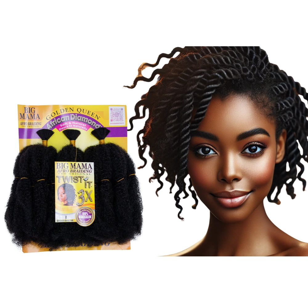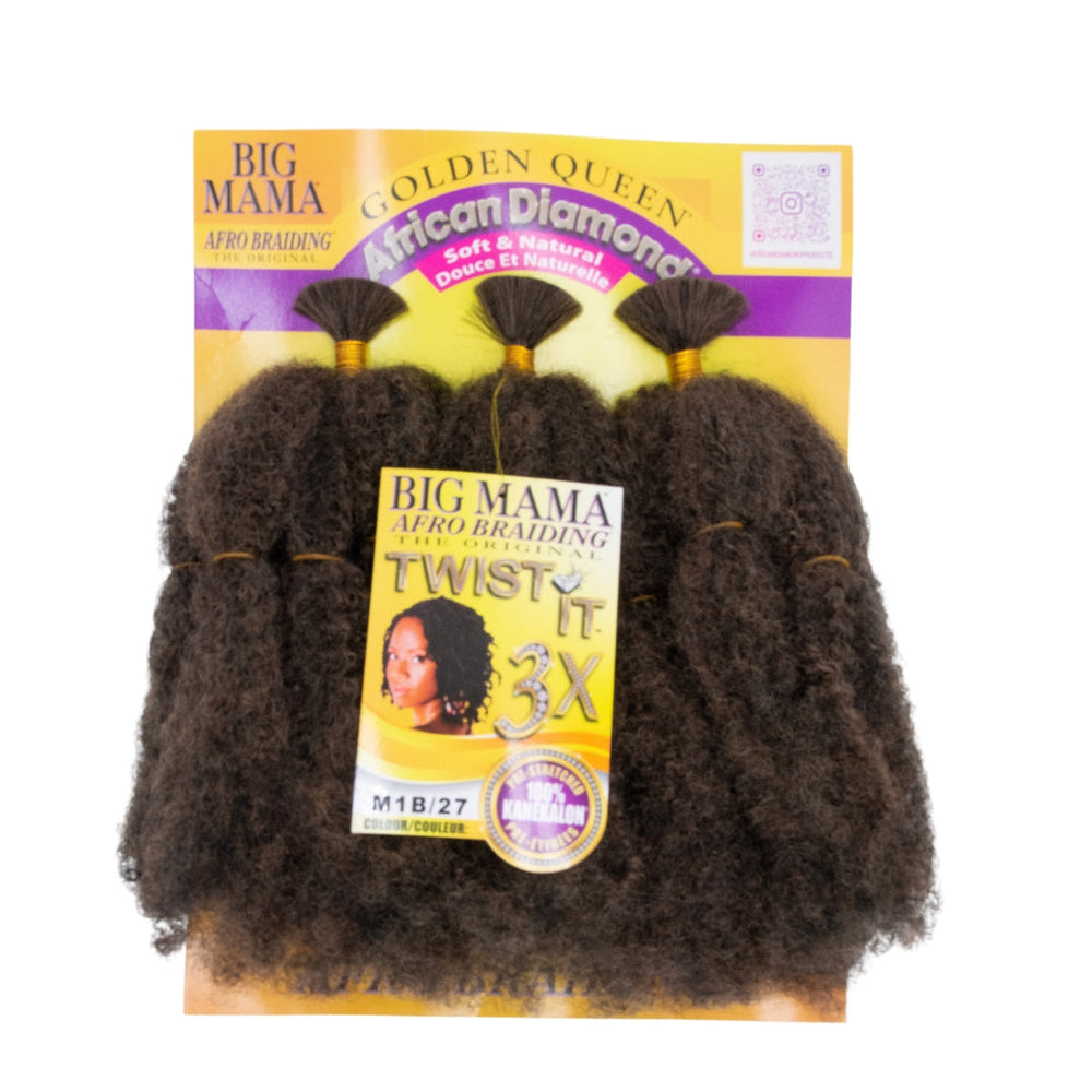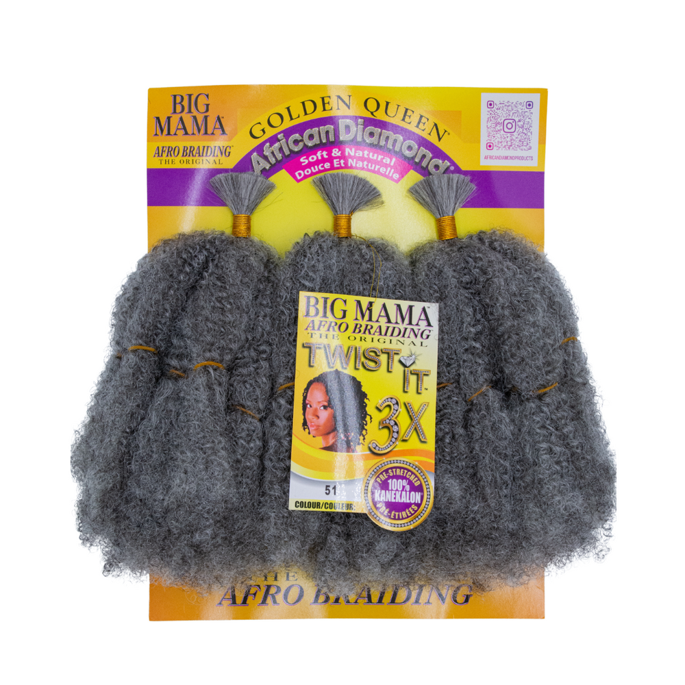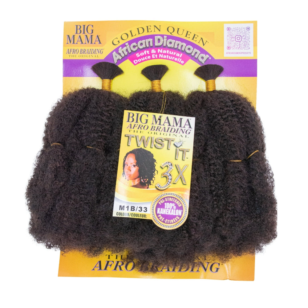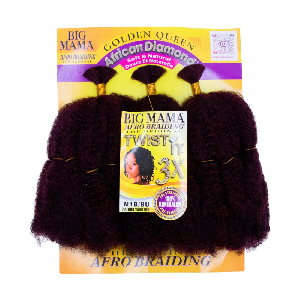 One Value pack of Big Mama 3x (Afro Braiding) is enough to create any style. Soft Afro kinky texture for braiding! Natural hair very closely resembles human hair feel.