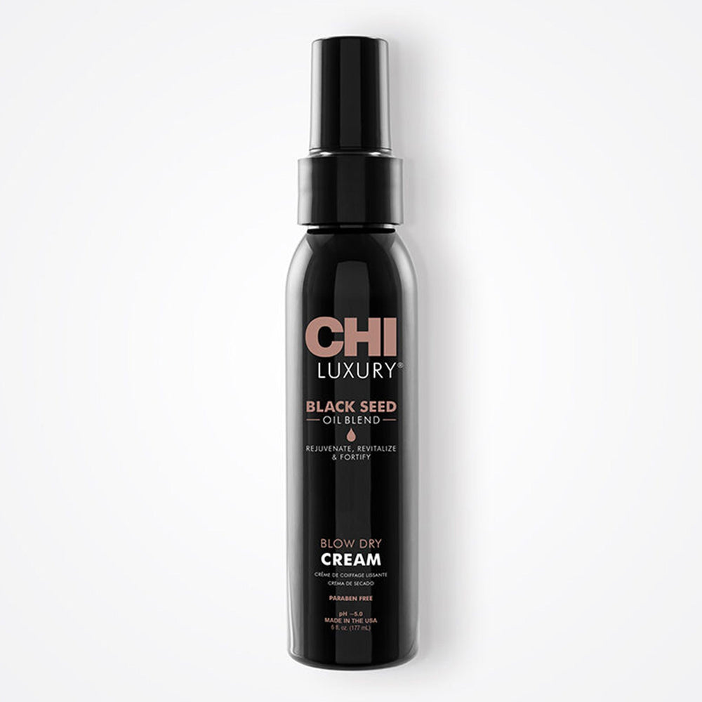 Get a salon-sleek finish with CHI Luxury Black Seed Oil Blend Blow Dry Cream. This lightweight, heat-activated styler helps speed dry time, adds slip and control for easier brush work, and leaves hair smooth, shiny, and touchable—without heavy residue. Ideal for sleek blowouts, bouncy round-brush styles, and soft, frizz-free finishes.