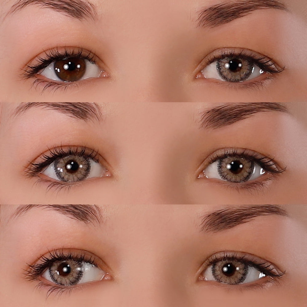 CRYSTAL HAZEL natural style contact lenses feature a bright hazel tone throughout blending into a dark outer ring that widens eyes with its circle lens effect. Opaque and excellent for covering both dark and light brown eyes, they brighten and lighten eyes drastically.