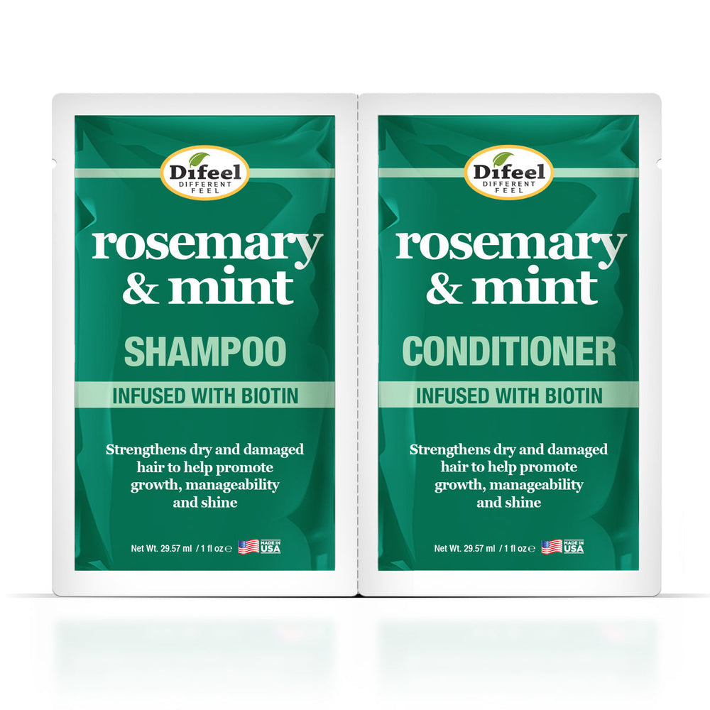 This packette includes both Difeel Rosemary Mint Hair Strengthening Shampoo