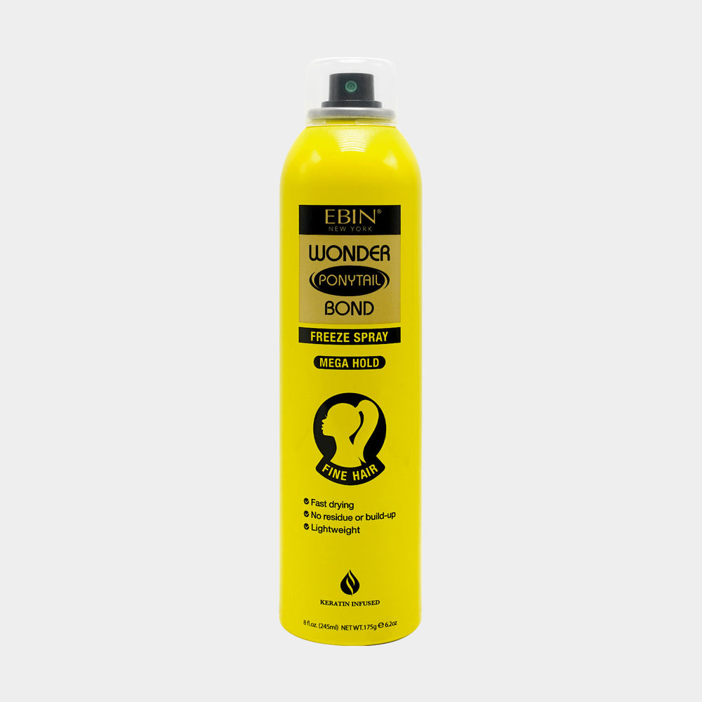 EBIN's Wonder Ponytail Bond Freeze Spray has a firm hold for the ultimate ponytail/up-do. This hairspray is sure to keep your style locked in place with a smooth shiny finish.