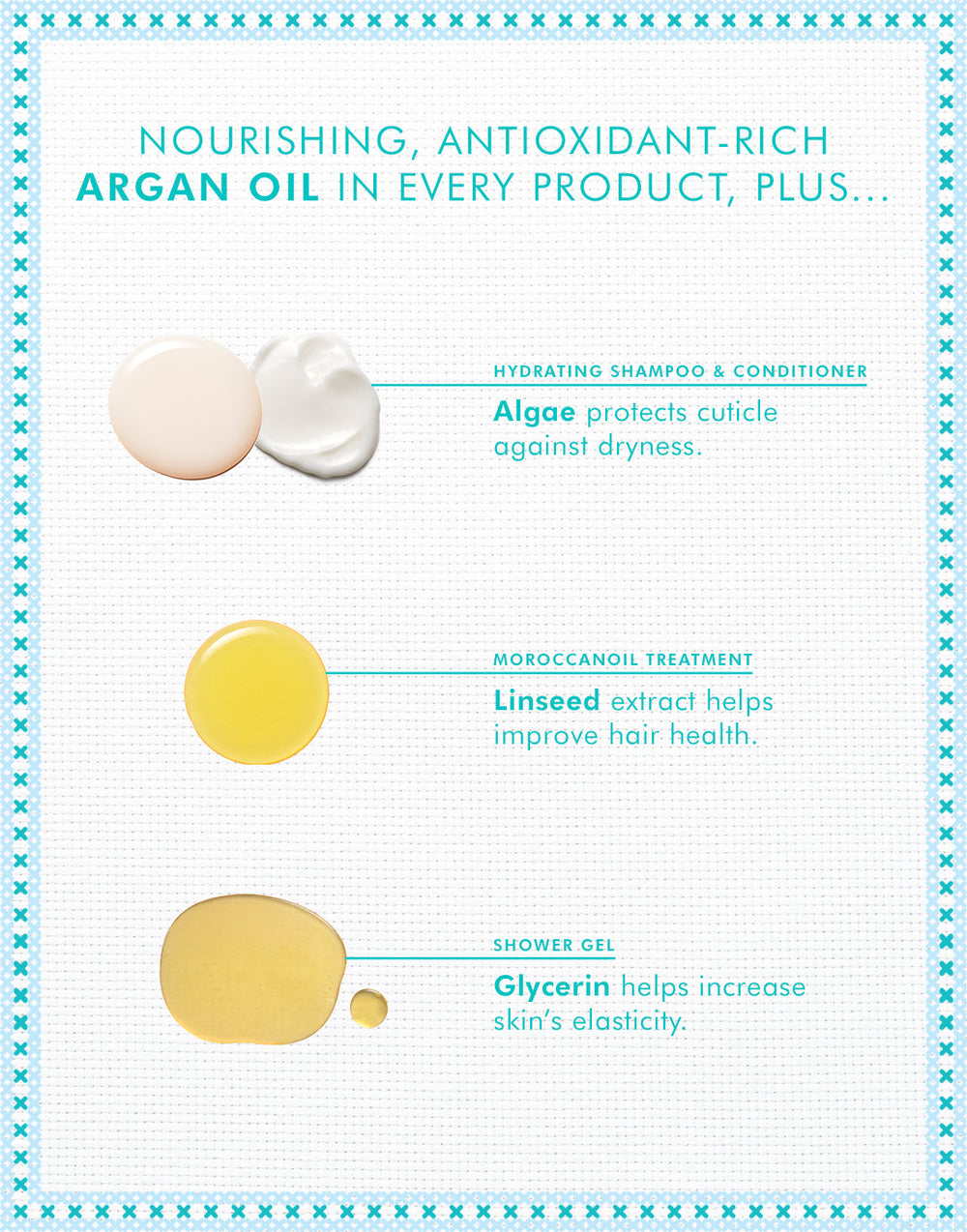 • Hydrating Shampoo: A moisture-balancing shampoo to gently cleanse while infusing hair with argan oil, moisturizing red algae, and vitamins A and E.