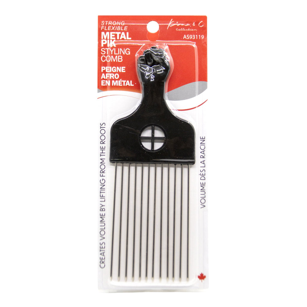 This professional metal pik styling comb is perfect for adding volume, detangling, and clean sectioning. Wide, smooth metal teeth lift from the roots for easy styling, while the strong, flexible handle gives comfortable control without snagging—ideal for naturals, curls, coils, locs, and stretched styles.