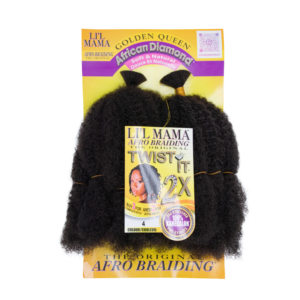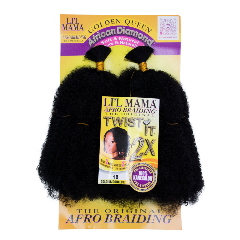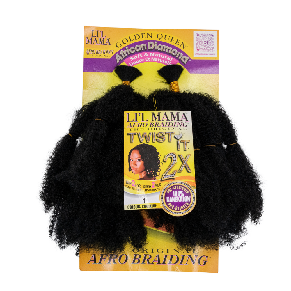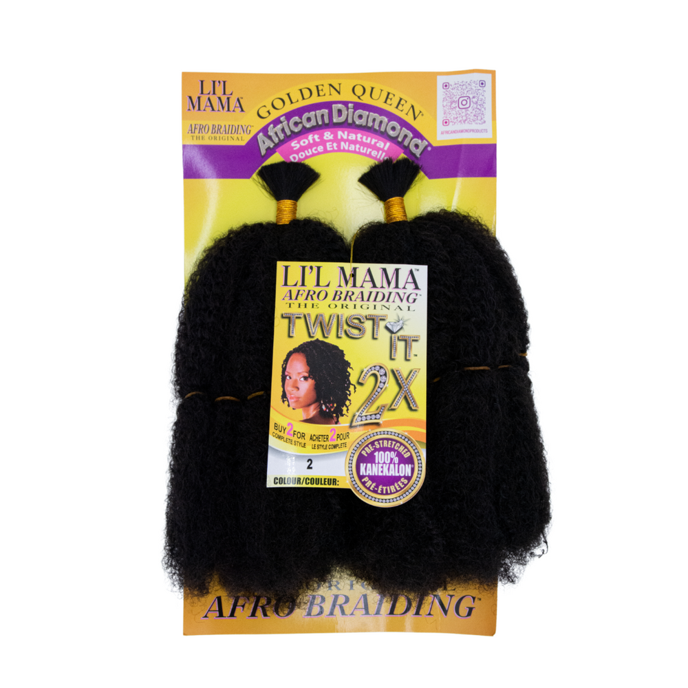 Two packs of Li'l Mama 2x (Afro Braiding) will be more then enough to create any style and have some hair left over for future braiding.