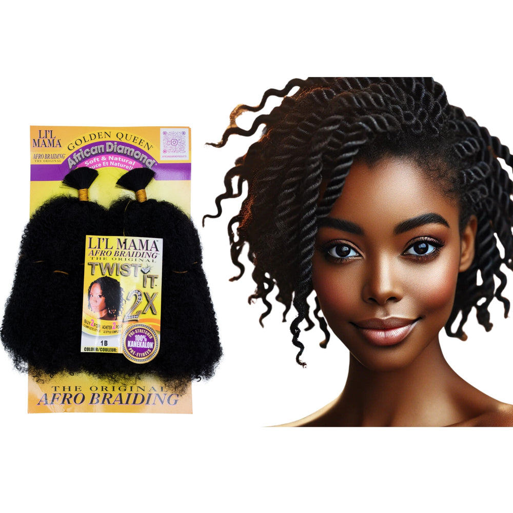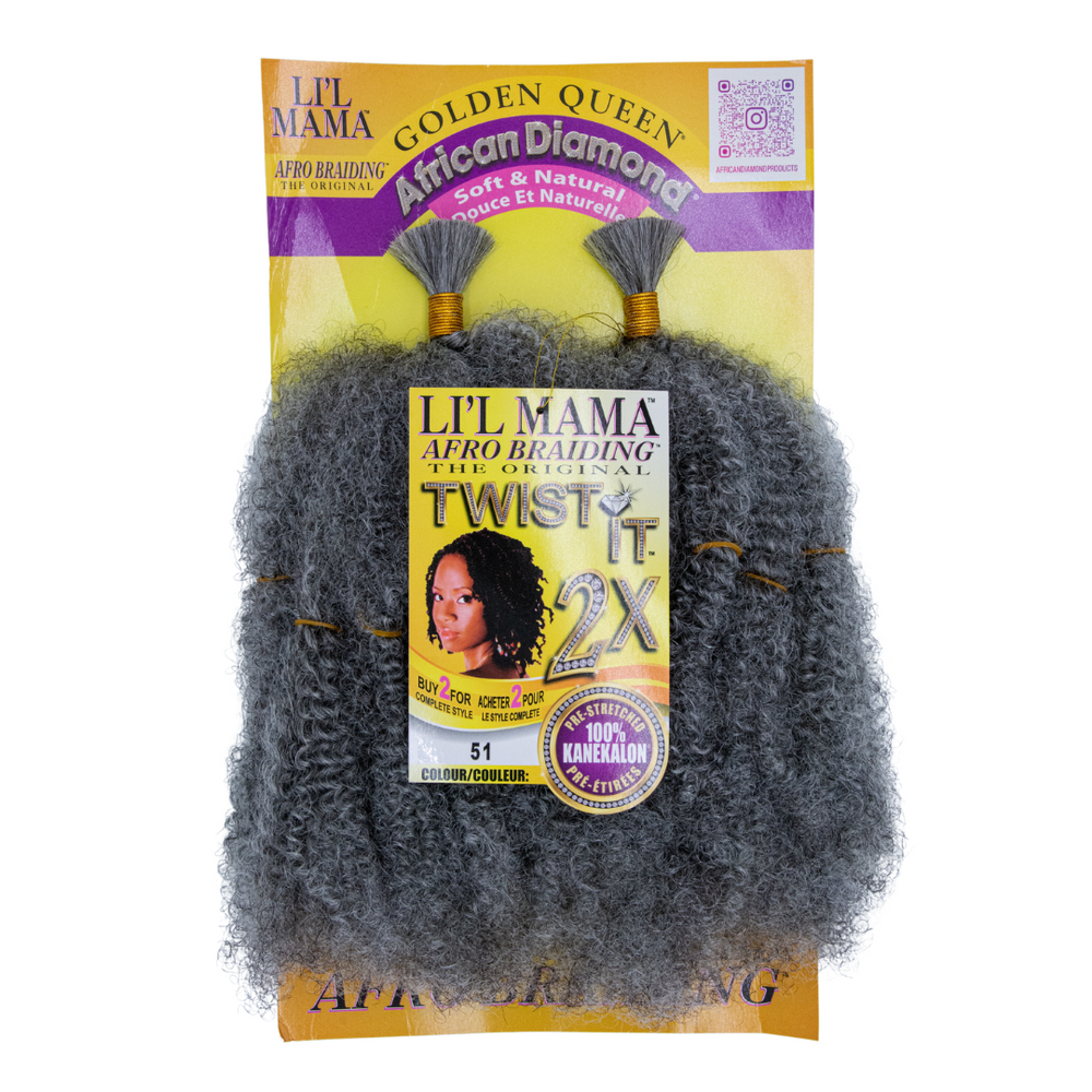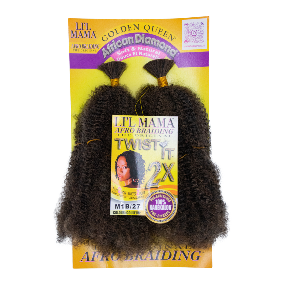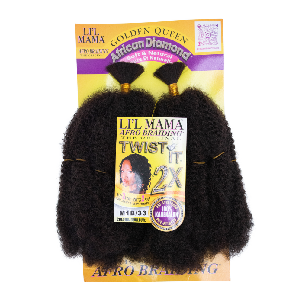 Two packs of Li'l Mama 2x (Afro Braiding) will be more then enough to create any style and have some hair left over for future braiding.