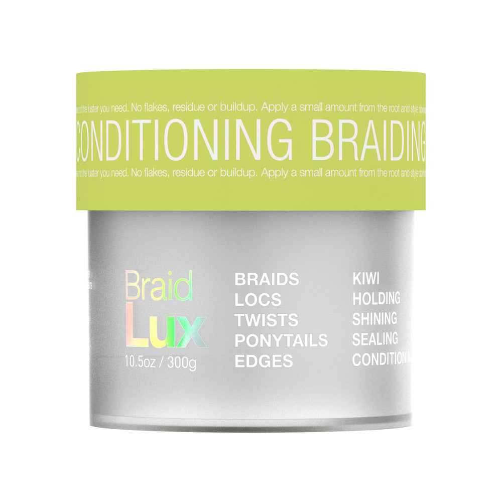 Seal and perfect your braids, locs, twists, ponytails, and edges with Braid Lux. This natural conditioning formula tames frizz and flyaways, adding shine and luster without flakes, residue, or buildup.