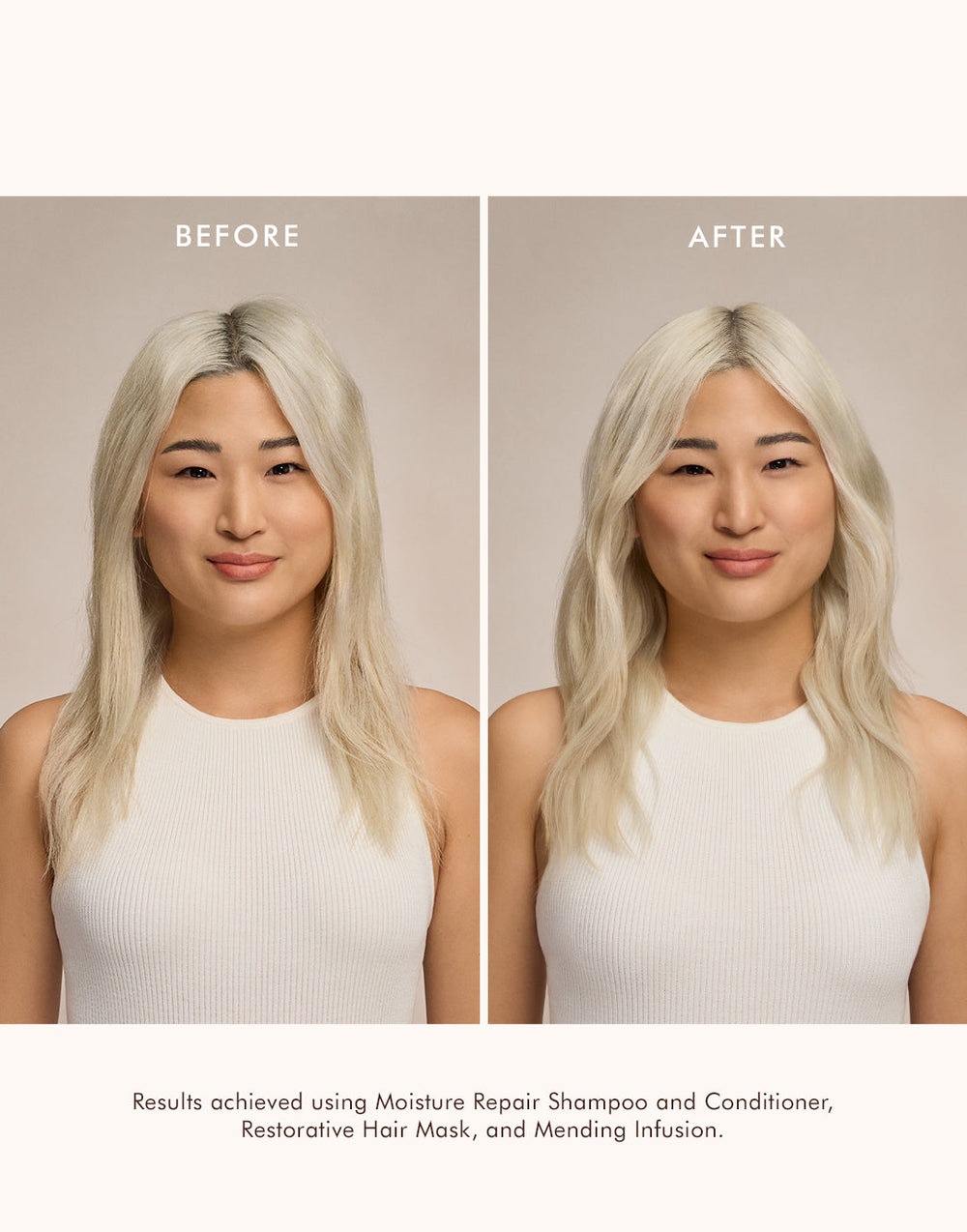 Instantly seal split ends for a silky, fresh-cut appearance with Mending Infusion. This quick-fix finisher not only seals up to 90% of split ends, but also nourishes and helps strengthen hair to prevent future damage and treat weakened strands. Created for use on dry hair, the ultra-lightweight, fast-absorbing formula includes argan oil for a satin finish, larch tree extract to physically envelope strands and bind frayed ends, and a blend of naturally derived ingredients to help treat hair by strengthening, improving elasticity, and protecting against future breakage.
