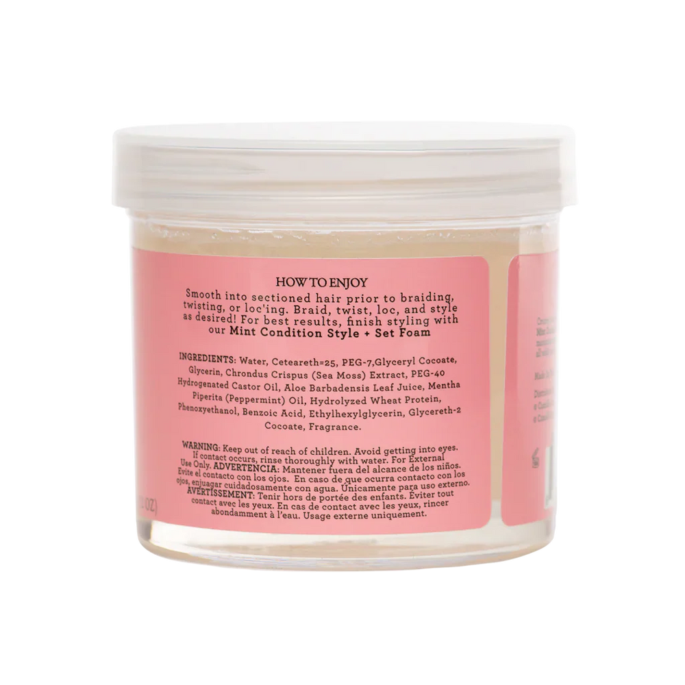 A braiding gel infused with aloe vera and sea moss to keep braids, locs, and twists neat and nourished. Achieve your desired protective style with our specially formulated hair gel for braids. Prevents frizz, maintains extreme hold, and reduces breakage and shedding while delivering a high shine for that perfect braid.