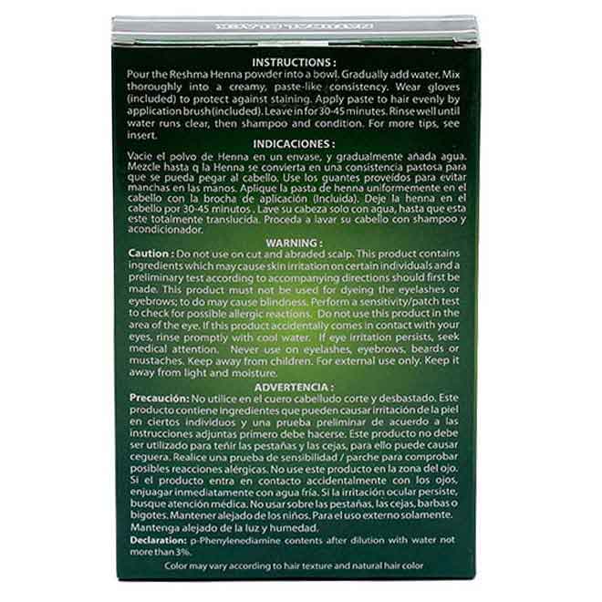Be advised: Patch test this and all hair colors before use to check for possible allergic reactions. Do not use Reshma Beauty® 30 Minute Henna on eyelashes, eyebrows, beards, or mustaches.