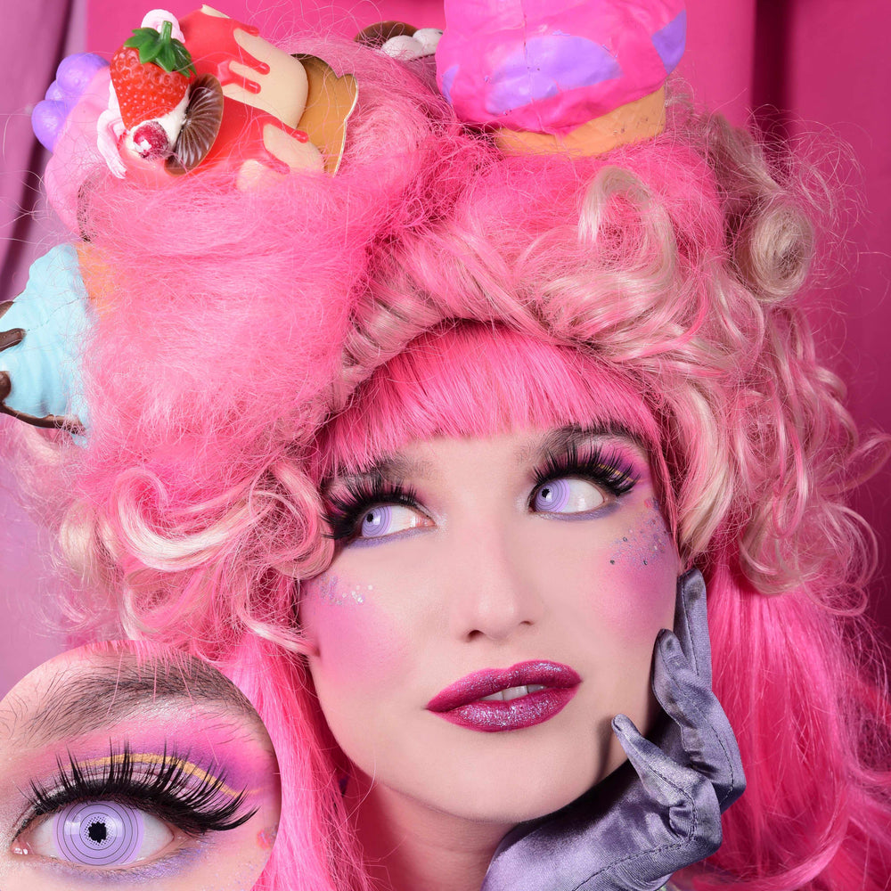 Primal's RINNEGAN Contacts feature an empowering purple hue. A semi-mesh covers half the pupil while still allowing you to see clearly for easy navigation. The rings inside the lens represent the six paths, each holding a different power, even dominion over the dead.