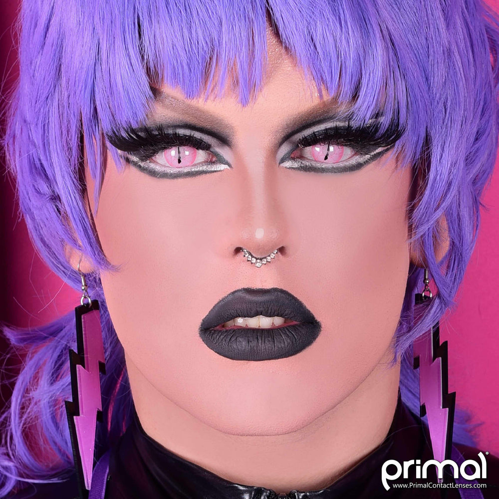 The SLAYER lens design features a light pink background with a darker pink vein effect overlay, which illuminates and meets at the outer ring of the lens. The pupil is fully hidden under a see-through mesh. A black line in the middle of the lens gives a demonic effect, making it perfect for cosplaying characters from popular anime series.