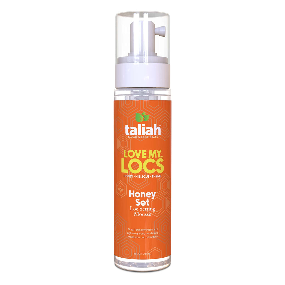 Taliah Waajid Love My Locs Honey Set Loc Setting Mousse Indulge in the ultimate styling experience with our alcohol-free hair mousse, crafted to perfection for firm yet soft hold and long-lasting styles. Infused with the natural goodness of honey, hibiscus, and thyme, this innovative formula strengthens and conditions your hair without any buildup or residue.