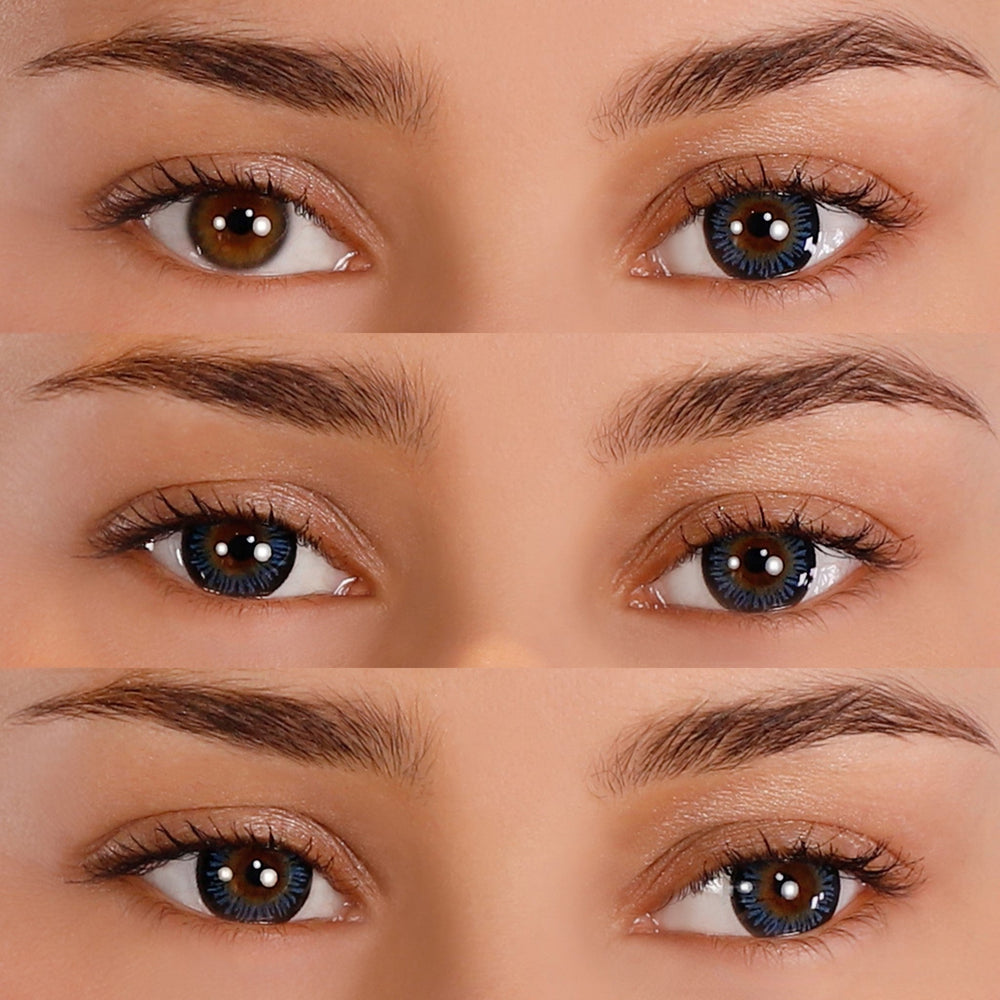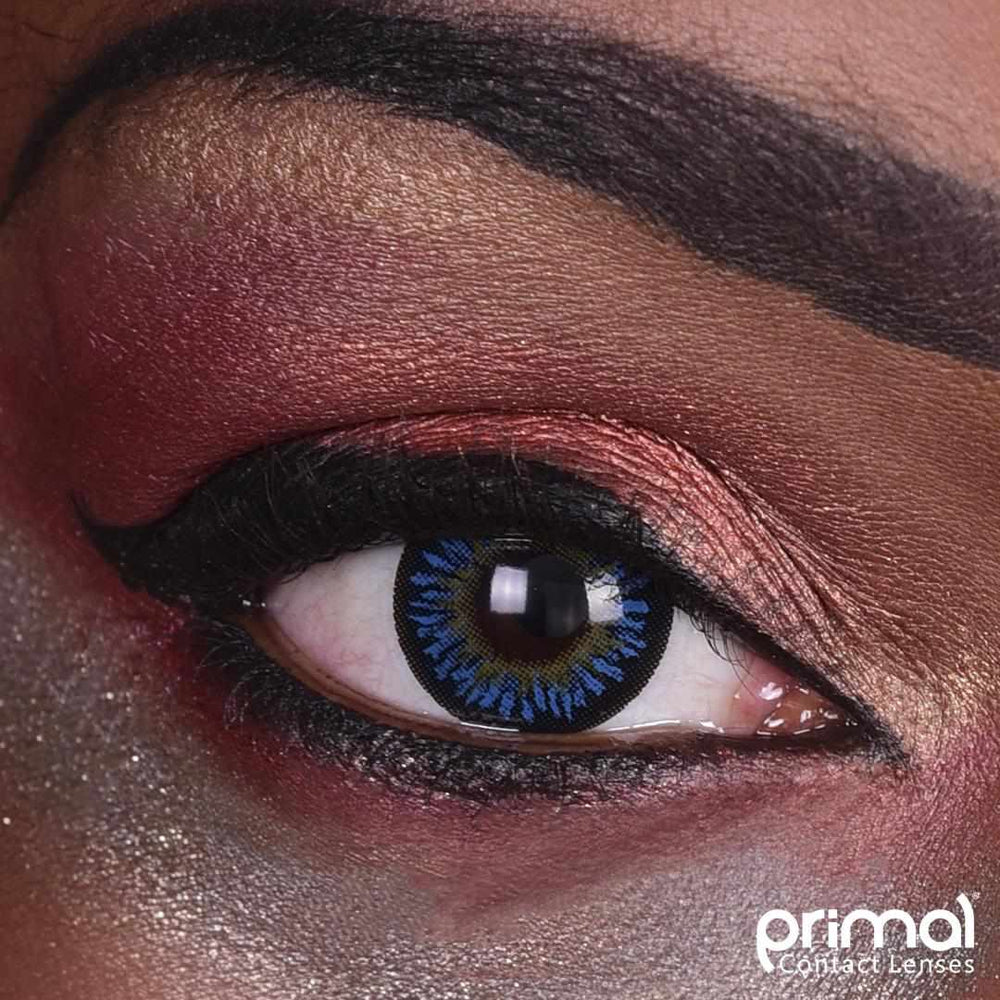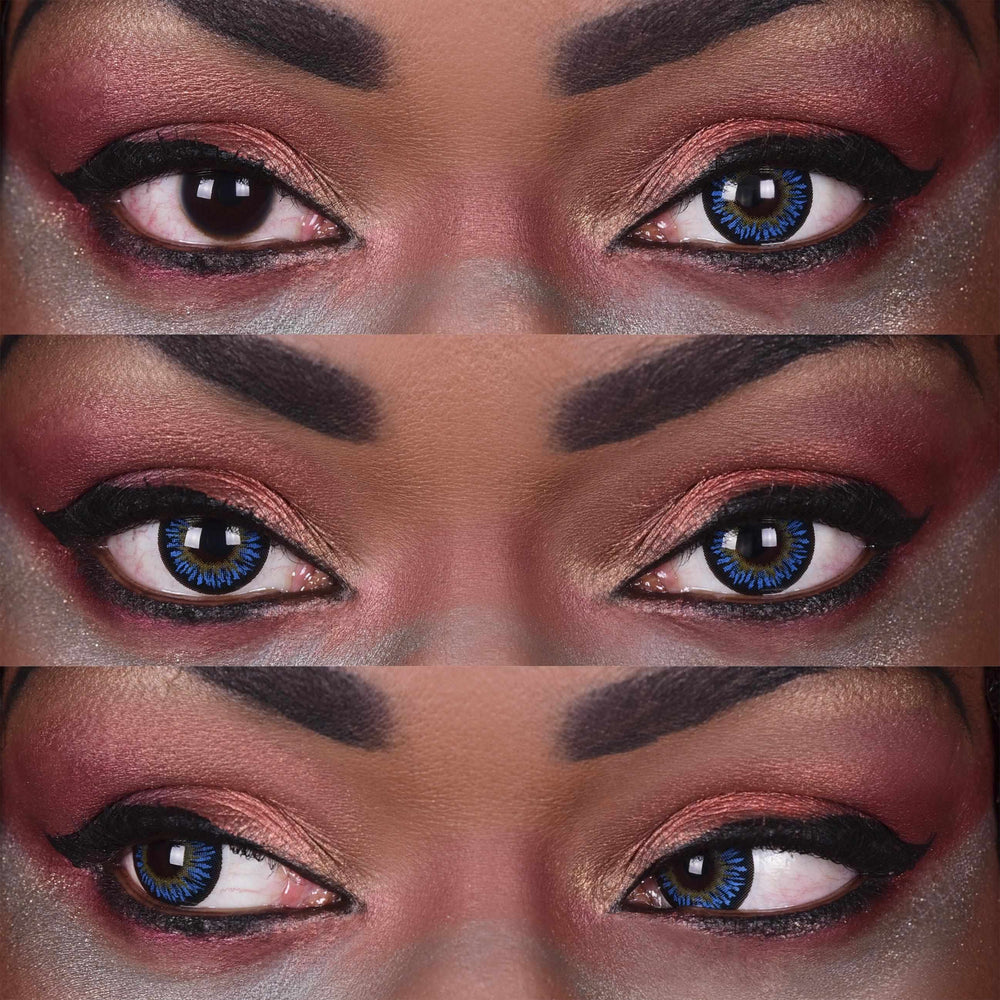On both light and dark natural eyes, the TEMPTRESS OCEAN lenses create a bright contrast, with the blue of the iris and the yelow of the center playing off of each other.