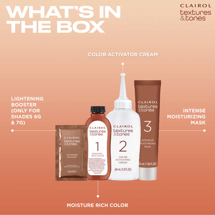 BRILLIANT COLOR + MOISTURIZED HAIR. With Zero Ammonia, Argan and Olive oil, Textures & Tones gives you moisture-rich color that is key for maintaining curl definition and shine.