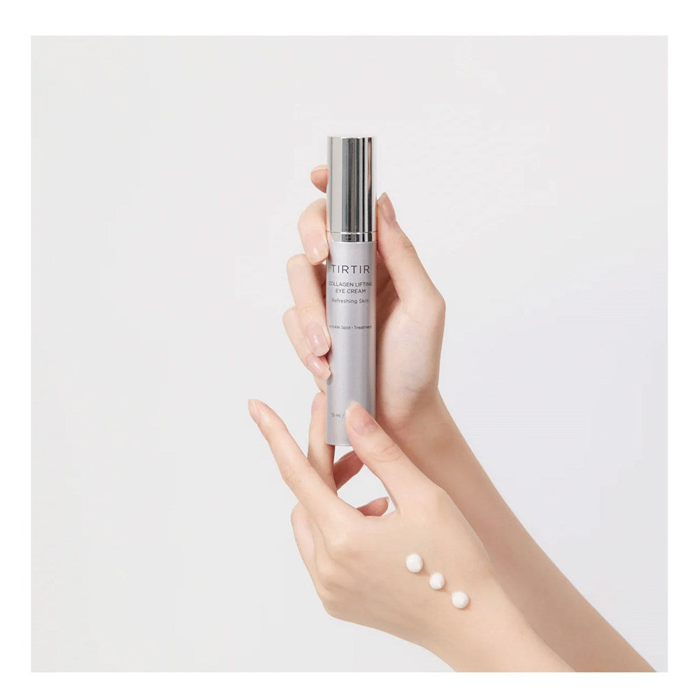 TirTir Collagen Lifting Eye Cream helps you achieve youthful, radiant eyes this revitalizing eye treatment firms, hydrates, and brightens the delicate skin around the eyes. Five types of peptides make the skin more elastic and Niacinamide and adenosine make fine lines less visible.