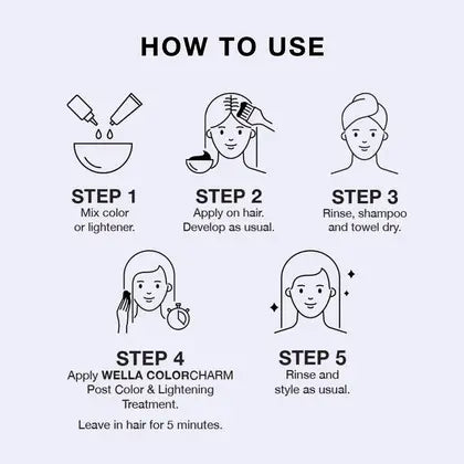 Bid farewell to damage with our ultimate color companion. Wella colorcharm Post Color & Lightening Treatment conditions, adds shine and strengthens hair after chemical treatments, providing up to 90% less breakage*.